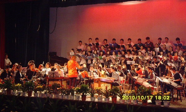 在经过四天的勤奋学习之后,汇报演出于17日晚上6点半在永利官网音乐厅举行,来自各学院的领导老师出席了本次汇报演出,整个音乐厅座无虚席。音乐会上,在德国教师指导下的音乐学院同学向全校师生汇报了这几天的学习成果。音乐会持续近两个小时,演出了世界名曲,并将中国民族乐器完美地融入到德国民谣的演奏中,学生们在这几日取得的进步显而易见。演出期间音乐厅里掌声不断,气氛相当活跃,整场汇报演出取得了圆满成功以及全场观众的一致好评。演出结束后德国教师表达了对永利官网学生的赞美和永利官网热情款待的感谢之情。