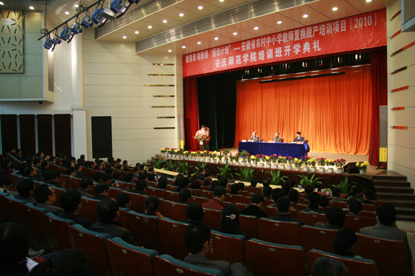 11月14日,教育部、财政部“国培计划”——安徽省农村中小学教师置换脱产培训项目(2010)安庆师范学院培训班开学典礼在永利官网龙山校区音乐厅隆重举行。党委副书记、院长朱士群,副院长张群,安徽省教育厅师资管理处处长齐建平出席典礼,教务处、继续教育学院、外国语学院、政法学院、人文与社会学院、计算机与信息学院、物理与电气工程学院、资源环境学院等项目责任单位负责人及全体置换脱产培训班学员参加开学典礼。开学典礼由副院长张群主持。
