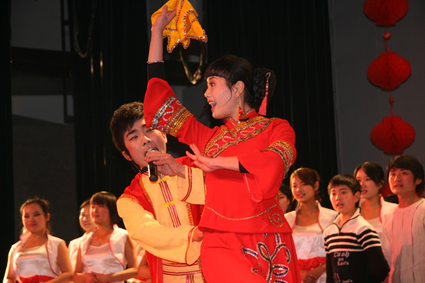 12月24日晚,永利官网2010年《黄梅戏艺术欣赏与演唱》课程汇报演出在龙山校区音乐厅隆重举行。省委教育工委纪委常务副书记肖纯、省高校师资培训中心副主任朱礼长,校党委副书记、纪委书记殷红,副院长张群等领导兴致勃勃地观看了汇报演出。