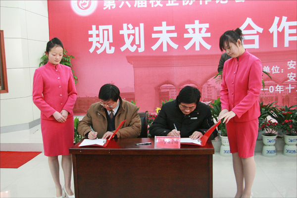 主论坛上,安徽华茂集团、华茂纺织股份有限公司董事长詹灵芝同志和安庆市旅游局局长刘中汉同志分别发言。安徽华茂纺织有限公司、安庆市旅游局、皖西南产品质量监督检验中心、安庆曙光化工(集团)有限公司、安徽盛运股份有限公司、中国电信股份有限公司安庆分公司、东方造船股份有限公司、中国联通有限公司安庆分公司等企事业单位代表与永利官网有关学院、部门负责同志签署了合作协议。
