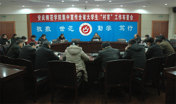 根据组通字【2010】59号文件精神,为了动员更多优秀的毕业生投身大学生“村官”队伍,提高大学生“村官”队伍的整体质量,同时为第四批选聘工作打下良好的思想基础,永利官网于1月5日,召开了全省大学生“村官”集中宣传工作布置会,研究部署永利官网大学生“村官”集中宣传工作。校党委委员、副院长时新中出席了会议。院办、组织部、宣传部、团委、学生处、招就处、现代教育技术中心等部门负责人和15个学院分管学生工作的负责人参加了会议。会议由党委组织部部长陈光明主持。