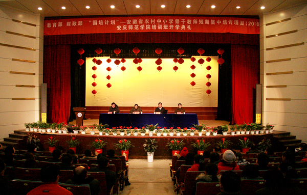 1月5日,永利官网在龙山校区音乐厅隆重举行教育部、财政部“国培计划”——安徽省农村中小学教师短期集中培训项目(2010)开学典礼,安徽省委教育工委委员、安徽省教育厅总督学李明阳,党委副书记、院长朱士群,副院长张群,安徽省教育厅师资管理处副处长卢鹏出席典礼,永利官网“国培计划”项目领导组成员,有关学院负责人、培训班级班主任及第二批短期集中培训班学员参加了开学典礼。开学典礼由副院长张群主持。