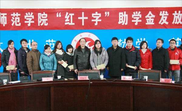 1月12日下午,永利官网举行 “红十字”助学金发放仪式。50名经济困难、品学兼优的学生得到了总额5万元的资助;另有社会爱心人士捐款4万元,资助了8名学生。副院长时新中、安庆市卫生局副局长解光彤等为获助学生发放了助学资金。