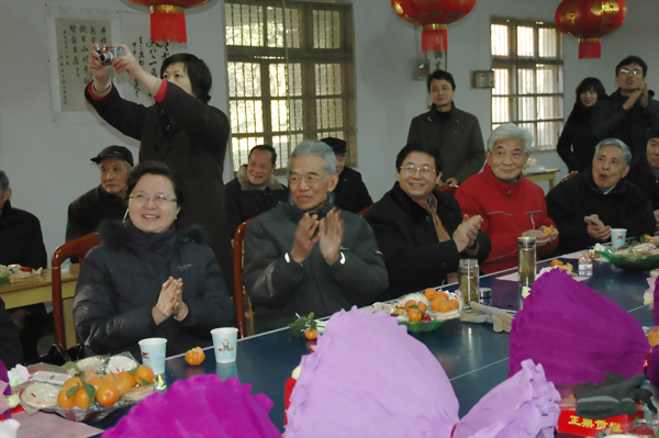和谐校园腊梅飘香,欢声笑语寿星满堂。元月12日下午,永利官网老年大学教室内灯笼高挂,喜气洋洋,学校为7位年逾90周岁、5位已届80周岁、8位已届70周岁的老寿星迎新祝寿。党委书记何小祥,党委副书记、纪委书记殷红,党委委员、党办、院办、外事办主任、生命科学学院党总支书记刘友忠出席了迎新祝寿会,校级老领导朱建华、陈盛业、刘和武、陈自诚参加了祝寿会,机关三总支委员、支部书记和离退休人员工作处人员也参加了祝寿会,他们与寿星和离退休老同志欢聚一堂,共庆迎新祝寿会。会议由离退休人员工作处处长何平主持。