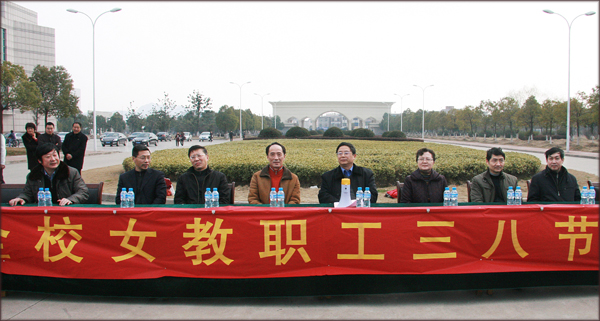 阳春三月,风和日丽。3月8日下午,龙山校区敬敷广场锣鼓喧天、横幅高悬,永利官网庆祝三八国际劳动妇女节101周年“环校园健身走”系列活动在这里隆重举行。党委书记何小祥,党委委员、副院长时新中,党委副书记、纪委书记殷红,党委委员、副院长闵永新,副院长张群,党委委员、副院长汪时珍,党委委员,党办、院办、外事办主任刘友忠等到现场表达了对全体女教职工的节日祝贺。