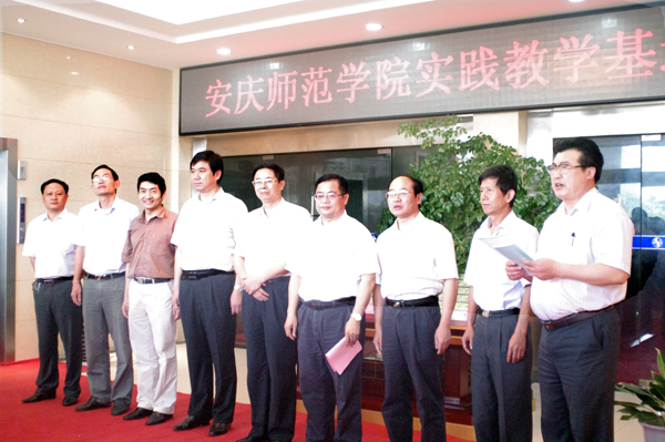 党委书记何小祥,党委委员、副院长张群,桐城市委常委、副市长程万友,安徽盛运机械股份有限公司董事长开晓胜共同为实践教学基地揭牌。