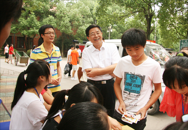 8日上午,何小祥、朱士群、殷红、闵永新、张群、汪时珍、时新中等校领导,在办公室等相关部门负责同志的陪同下,亲临龙山校区、菱湖校区的新生报到点和学校设在火车站、汽车站等地的接待点,查看了新生报到情况,看望了正在现场工作的院系的老师和学生志愿者。