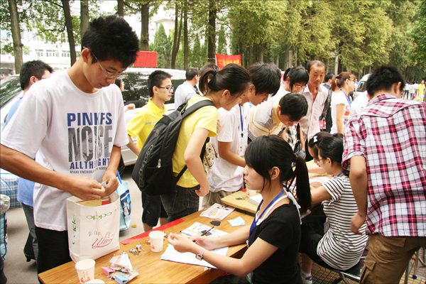 校团委、学生会及各院系还组织青年志愿者主动为新生服务。当经历了一路奔波的新生与家长来到学校后,马上会有志愿者围上去把他们带到接待区,为家长们捧上一杯茶水,为新同学指路、答疑;许多高年级学生加入到志愿者队伍中来,他们奔跑于各个报到地点,热情地帮助新生办理各种手续,为新生搬运行李,给新生讲解各个注意事项及学校的基本情况,来消除新生的陌生感。面对热情的接待和周到的服务,许多新生和家长的脸上洋溢着满意而又欣慰的笑容。