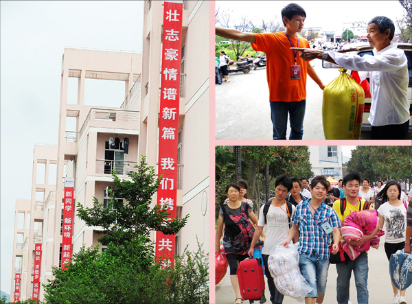 校领导高度重视迎新工作。开学伊始,就多次召开工作会议,精心安排,周密部署。在迎新工作领导小组的统一部署下,各职能部门、各院系紧密配合、协调运行,各司其职,确保新生入学报到工作安全、有序、文明的开展。从车队接送新生、有关职能部门和各二级学院设立接待服务台,到后勤服务集团美化宿舍环境,提供后勤物资,都充分做到了以学生为本,以家长和同学的满意为本,一点一滴,都是真情的结晶,使新生一迈进大学的校门就感觉到了大学的神圣与家庭的温馨。