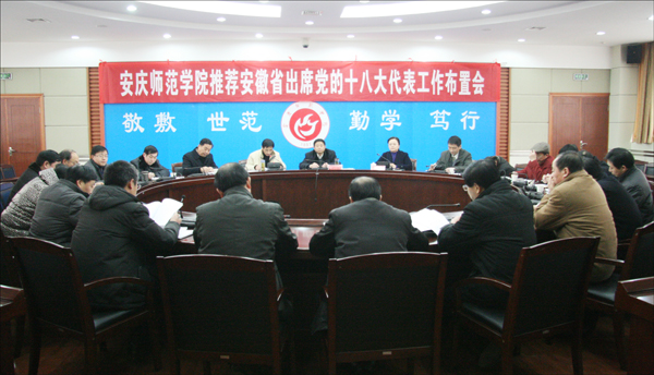 陈光明部长传达了省委教育工委关于安徽省出席党的十八大代表选举工作会议精神,并就学校做好我省出席党的十八大代表候选人初步人选推荐做了具体安排。(陈 东)
