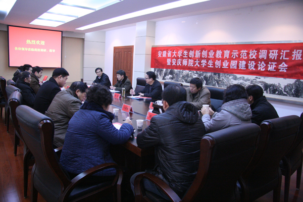 院长朱士群主持召开了汇报会,副院长张群以《创新机构,加大投入,建立基地,校地联手,努力构建创新创业教育实践新格局》为题,详细汇报了永利官网开展大学生创新创业教育实践的具体做法、取得的成效以及今后的工作思路。安庆市人力资源与社会保障局副局长许建南在汇报会上表示,安庆市人力资源与社会保障局将大力支持永利官网大学生创新创业教育实践工作,积极推进校地合作深入发展。