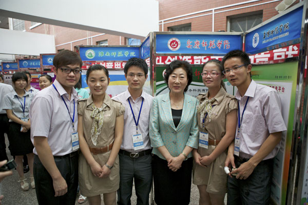 本届“挑战杯”大学生创业计划竞赛从宣传动员到省里决赛都得到了学校各级领导的高度重视。学校领导多次开会听取比赛组织工作进展汇报,了解学生作品水平,给予竞赛指导。6月2日,校党委委员、副院长汪时珍赶到合肥,亲临永利官网作品展台,看望慰问参赛同学,听取同学们对作品的汇报,为同学竞赛指导鼓劲。各学院、相关职能部门为了做好“挑战杯”赛事的组织工作,充分宣传、多次动员、强化培训、精心挑选推荐作品。