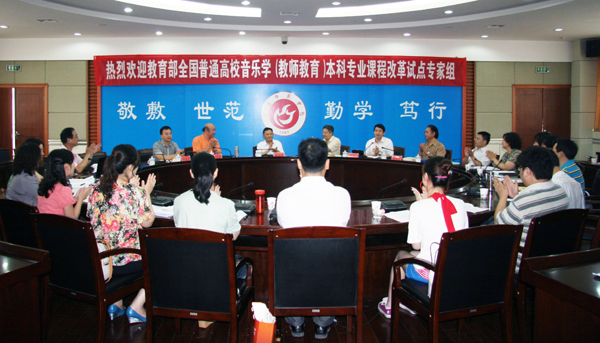 6月19日,在省教育厅体卫艺处处长宣进的陪同下,以教育部艺术教育委员会委员、全国教育科学规划学科评议委员、首都师范大学音乐学院教授王安国为组长,教育部艺术教育委员会委员、河南大学艺术学院副院长陈家海,哈尔滨师范大学音乐学院院长陶亚兵,西南大学音乐学院院长郑茂平为成员的教育部全国普通高等学校音乐学(师范教育类)本科专业课程试点工作专家调研组一行莅临永利官网调研。校党委书记何小祥亲切会见了专家组一行。上午,学校举行了欢迎仪式,校党委副书记、院长朱士群致欢迎辞,校党委委员、副院长张群出席。教务处、音乐学院等部门和单位负责人参加会议。