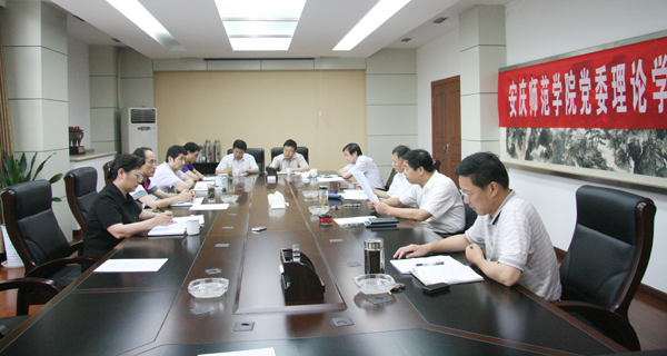 6月27日,在参加完省委教育工委创先争优表彰大会和保持党的纯洁性主题教育实践活动动员大会后,党委书记何小祥、党委副书记、院长朱士群同志顾不上休息就立刻赶回学校,召开党委理论学习中心组学习会议,专题学习张宝顺书记在全省“保持党的纯洁性、迎接党的十八大”主题教育实践活动动员大会上的重要讲话、程艺书记在省委教育工委创先争优总结表彰大会上的重要讲话和全省高教工作会议精神。党委副书记、纪委书记殷红,党委委员、副院长闵永新,党委委员、副院长张群,督导员时新中和党委委员、办公室主任刘友忠,党委委员、组织部部长陈光明等领导出席会议,党委宣传部、党校负责同志参加了学习。