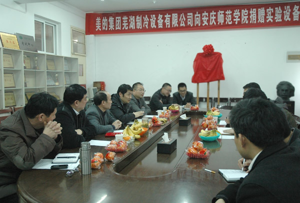 陈小胜副总经理介绍了美的集团及美的芜湖制冷设备有限公司概况。他在讲话中指出,此次向安庆师范学院捐赠实验实训设备以及在集团层面在省内高校中尚属首次,希望双方在今后工作中进一步加强合作,把前期合作基础做实、做强、做大,实现双赢。
