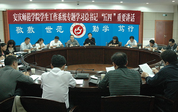 闵永新副院长指出,习近平总书记“五四”讲话和回信具有重要的思想性、指导性和针对性,对全体在校大学生和全国团员青年提出了殷切的期望,指明了前进的方向。结合永利官网工作,闵永新副院长就学习习近平总书记“五四”讲话和回信,提出了三点要求:一是深刻领会习近平总书记“五四”讲话和回信的丰富内涵和重大意义。习近平总书记的讲话和回信思想深刻、内涵丰富,意义重大、影响深远,对广大团员青年提出了殷切期望,同时对各级党团组织、领导干部和教育管理工作者提出了明确要求,是开展青年工作和大学生思想政治教育的行动指南,对理解党的十八大精神、学习实践中国梦、提高道路自信、理论自信、制度自信具有重要意义。学生工作干部要组织广大团员青年认真学习讲话精神,把思想和行动统一到党中央对青年的希望和要求上来,用“中国梦”主题教育活动打牢青年的理想信念、激发青年的历史责任感,用师院梦激发青年的学习热情,为把永利官网建设成为应用性突出、特色鲜明的高水平大学贡献力量。二是全校各级团学组织要迅速掀起学习习近平总书记“五四”重要讲话精神的热潮,把学习讲话精神当做当前的重要任务来抓。要把学习贯彻讲话精神与学习贯彻党的十八大精神、与学习习近平总书记关于“中国梦”的一系列讲话精神、与开展“中国梦”主题教育活动紧密结合起来,广泛宣传身边典型和事迹;充分运用网络平台,让每位同学知晓“中国梦”的重大内涵和意义,迅速掀起、形成学习讲话精神的强大声势,帮助广大团员青年了解、领会、实践讲话精神。三是要在实际工作中贯彻讲话精神,积极教育广大团员青年全面发展、励志成才、报效祖国。要按照习近平总书记对广大团员青年提出的五点希望,深入开展“中国梦”主题教育活动,精心组织大学生暑期“三下乡”社会实践活动,制订、落实青年志愿者计划,做好“挑战杯”等赛事的指导、训练工作,扎实推进毕业生就业、西部计划等工作,提高广大团员青年的道德认知、道德养成、道德实践水平。