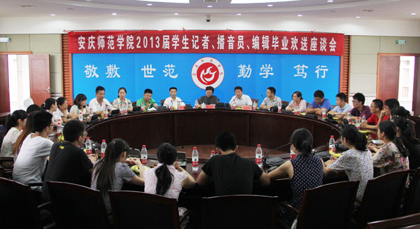 6月22日上午,学校举行2013届广播台、记者团毕业生欢送座谈会。党委副书记、纪委书记殷红出席会议并发表讲话,党委宣传部部长孙永玉、正处级调研员朱守良、副部长陈东等宣传部全体工作人员,学校广播台播音员、编辑和记者团成员,10级学生记者、播音员代表参加会议。孙永玉部长主持会议。