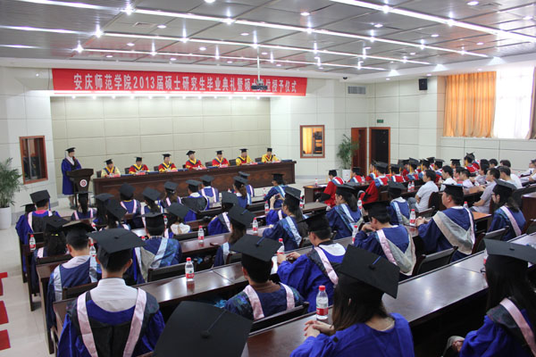 6月21日,永利官网2013届硕士研究生毕业典礼暨硕士学位授予仪式在龙山校区行政楼一楼会议室隆重举行。全体校领导出席典礼。各硕士点所在学院领导、研究生导师代表,学科建设与研究生教育处及相关部门的负责同志,2013届全体毕业研究生和部分在读研究生代表参加了典礼。毕业典礼由校硕士学位评定委员会副主任、副院长汪时珍主持。