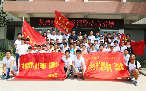 随后,在十里中心学校三楼会议室召开了一场简短而热烈的座谈交流会。何书记强调,丰富多彩的活动是共青团工作的生命与活力所在,共青团活动的开展要顺应当今社会的社会需求,大学生暑期“三下乡”社会实践活动正是将这两点进行有效融合,并能够产生一定的社会效益。何书记希望大家再接再厉,充分认识到社会实践活动的意义与价值,将志愿服务的精神传播到力所能及的地方,力争取得活动效益和社会效益的最大化。何书记还认真询问了大观区农民工子女数量及其受教育情况,在了解他们的实际需求后,希望校团委进一步做好对接工作,建立长效合作机制,努力为农民工子女送去更多的帮扶和关爱。