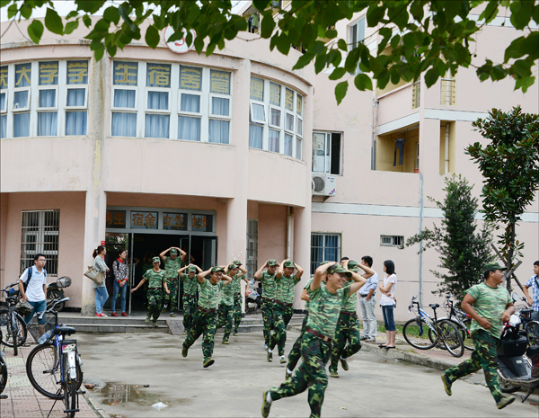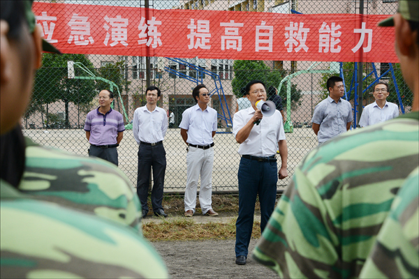 9月24日,永利官网在菱湖校区、龙山校区分别举行了2013级学生应急演练,15个学院的5700多名学生参加演练。