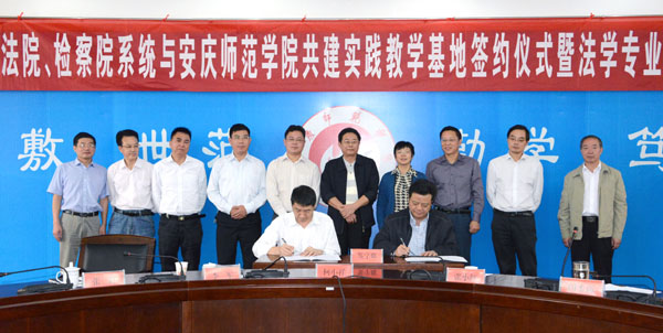张群副院长代表永利官网分别于安庆市中级人民法院和安庆市人民检察院签署了共建法学专业实践教学基地协议。安庆市中级人民法院、安庆市人民检察院及安庆市迎江区、大观区、宜秀区、怀宁县、望江县等人民法院和人民检察院作为永利官网法学专业实践教学基地,将为永利官网法学专业提供良好的实践教学条件。
