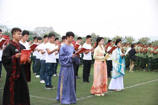 “见人善,即思齐,纵去远,以渐跻;见人恶,即内省,有则改,无加警”, 语调铿锵有力,声音响彻云霄!国庆前夕,在4名身着汉服的学生党员和80名身着白色T恤的团员青年学生领诵下,6000名新生齐声诵读《弟子规》,拉开了永利官网大学生“修德、修智、修行”教育工程的帷幕。
