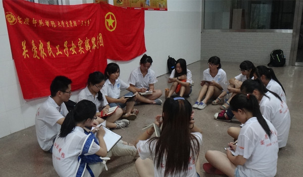 7月10日,队员们冒着酷暑,深入大观区进行了专题走访调研活动,为今后的课题研究奠定基础。这次活动让志愿者们真正走进社区,了解受访家庭的经济状况、家长受教育程度和孩子课余时间安排,切实提高了队员的社交能力和沟通能力,深化了对家庭教育这一问题的认识和了解。7月11日,团队党小组牵头开展了第一次党小组思想学习。“通过这次党小组思想学习,我更加充分理解了爱国主义的内涵,对‘三下乡’活动的目的和原则也有了深入了解,会后,我也认真反思了自己的日常行为与爱国主义时代主题之间的联系,从中认识到了许多自己还需要提高的地方,这样的反思对我的成长十分有益。”队员戴强强这样说道。