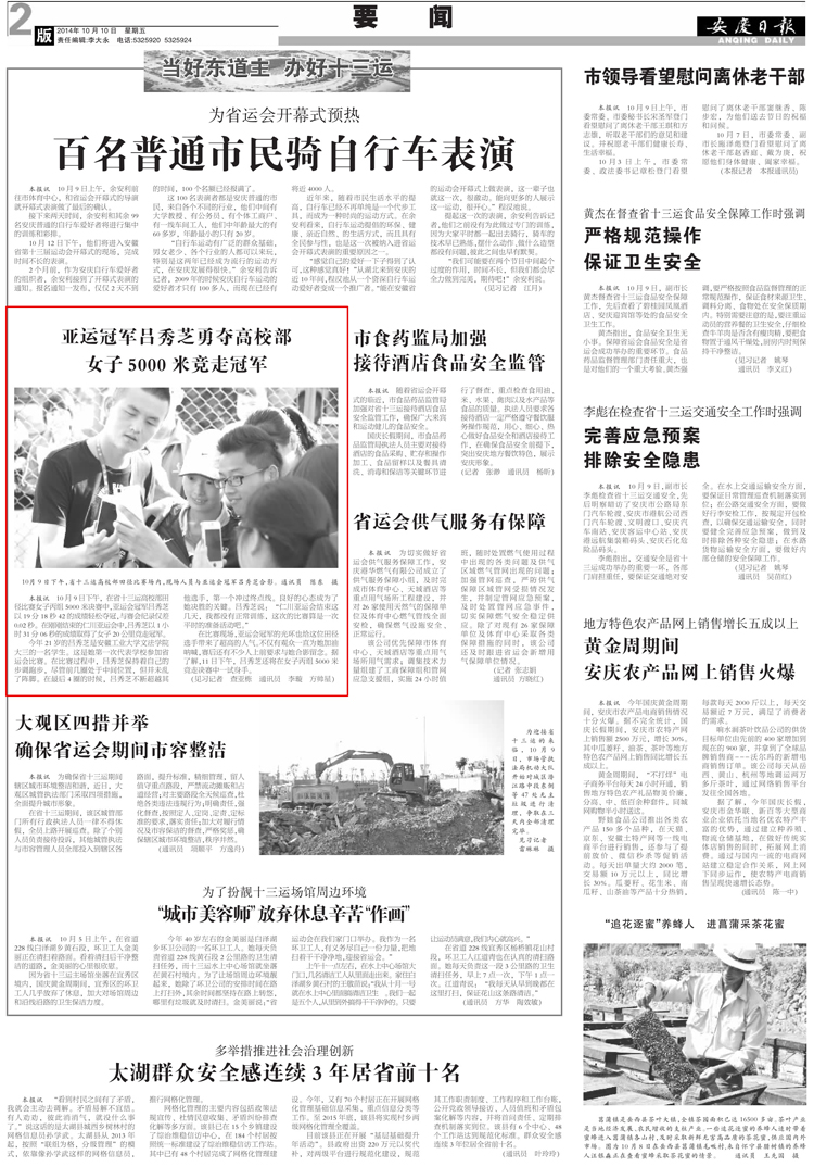 安庆日报:http://aqdzb.aqnews.com.cn/aqrb/html/2014-10/10/content_346610.htm