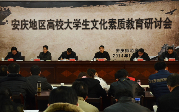 12月6日,以“优秀传统文化与大学素质教育改革”为主题的安庆地区高校大学生文化素质教育研讨会在永利官网隆重召开。特邀嘉宾大连理工大学博士生导师、大学生文化素质教育基地建设领导小组副组长杨连生教授,桐城师范高等专科学校党委书记朱宏,安庆职业技术学院副院长毕明生,安庆医药高等专科学校副校长李少军,安徽黄梅戏艺术职业学院副院长李光南等领导出席大会。来自安庆师范学院、安庆职业技术学院、安庆医药高等专科学校、桐城师范高等专科学校、安徽黄梅戏艺术职业学院等5所高校的师生代表参加了会议。张群副院长出席并主持了会议。