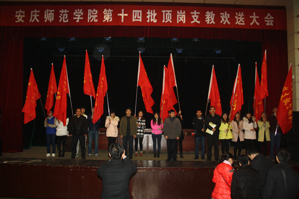张群指出,永利官网一直非常重视“顶岗支教”工作,经过多年的努力,顶岗支教工作已成为学校最具特色的常态化工作之一。前十三批共有4100余名同学参加了顶岗支教,顶岗支教在为同学们创造教学一线实践锻炼机会的同时,也解决了农村学校学科失衡和师资缺乏的困难,实现了高师院校和基础教育的“双赢”。前十三批同学在支教学校脚踏实地、兢兢业业地奉献自我,不仅在安庆及周边基础教育界成为佳话,也引起多家媒体的高度关注,在社会上反响强烈。张群希望同学们继续发扬吃苦耐劳、乐于奉献的精神,为学校顶岗支教工作的持续发展续写新的华章。他还对同学们提出四点要求,即:端正态度,精心备课,不折不扣地完成支教任务;做有心人,虚心向一线教师学习;做好吃苦耐劳的准备,敢于应对各种困难和挑战;提高安全意识,杜绝事故隐患。
