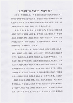 此前在2013年5月24日和12月13日,城山小学校长方正斌向党委宣传部分别发来邮件“姐姐老师——记安师院支教大学生李琴”和“老师,您别走”,肯定并表扬永利官网支教学生的出色表现。(教师教育中心)