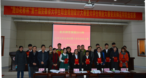 11月24日上午,永利官网举办“昆山花桥杯” 第十届安徽省大学生职业规划设计暨创业大赛选拔赛。副校长张群出席并为所有获奖选手颁奖。音乐学院、人文与社会学院、校团委、招生就业处相关负责同志和老师受邀担当评委。