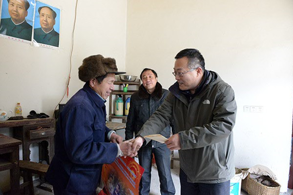 1月27日,党委书记许继荣,校长闵永新,副校长刘友忠,党委委员、党委组织部部长陈光明一行在党办等部门负责同志陪同下,赴永利官网帮扶联系点太湖县天华镇西冲村开展扶贫走访慰问活动。太湖县县委书记程志翔、太湖县扶贫办主任陈维新、天华镇党委书记王彬等陪同走访慰问。