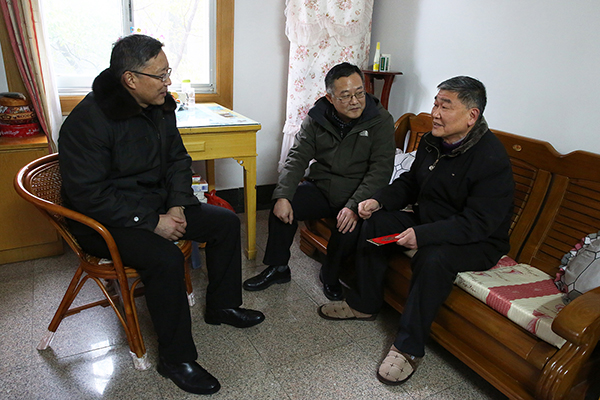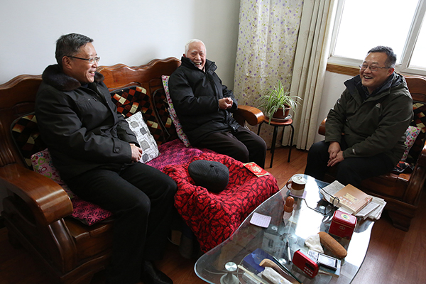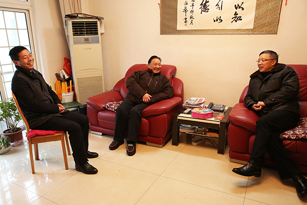 1月28至29日,带着深情问候和温馨祝福,许继荣、闵永新等校领导分头登门慰问了退休老教师石云孙教授、陈友存教授、王其申教授和全国优秀教师黄先军老师,曾担任学校领导职务的朱建华、丁伯华、赵晓和、刘和武、陈自诚、包荟梁、时新中、王海燕等离退休老领导。97岁高龄的学校原副院长陈盛业因病住院,学校领导还赶赴市立医院进行探视慰问。