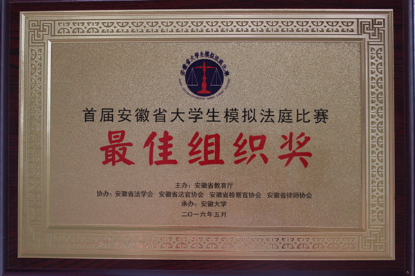 5月15日,首届安徽省大学生模拟法庭比赛在安徽大学落下帷幕。全省19所开设法学专业本科的院校参加了比赛。永利官网法学院在19所申请最佳组织奖的高校中脱颖而出,荣获“最佳组织奖”荣誉称号。2013级法学班戴月同学获得“优秀辩手”称号。