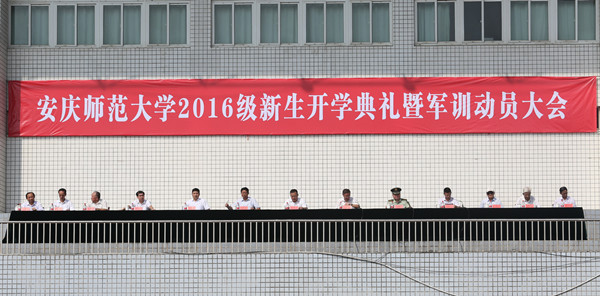 9月12日上午,yl23455永利官网在龙山校区塑胶田径运动场举行2016级新生开学典礼暨军训动员大会,4500余名新生在这里开始他们新的人生征程。校党政领导许继荣、闵永新、张群、汪时珍、刘友忠,省政协常委何小祥,校级离退休领导代表丁伯华、赵晓和、刘和武、时新中,党委委员陈光明、方锡球,武警安庆支队副政委王艳红,部分新生家长、各学院及相关部处负责人,2016级全体新同学等出席典礼。