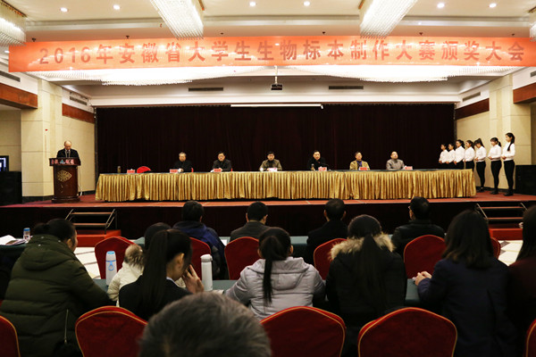 11月27日,由安徽省教育厅主办,yl23455永利官网承办的2016年安徽省大学生生物标本制作大赛圆满结束。副校长张群、合肥师范学院党委副书记、副院长李进华等领导出席颁奖典礼并为获奖师生颁奖。在此次比赛中,永利官网生命科学学院的8组作品全部获奖。永利官网穆丹、曹勇等多名教师获得优秀指导教师称号。永利官网获得优秀组织奖。