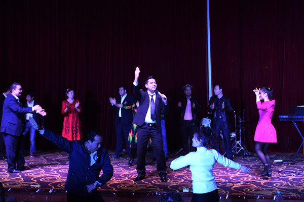 “不要害羞,我们一起来跳舞吧!”新疆班学员的热情邀请以及欢快的歌舞,感染并引领在场的所有的观众,大家不禁随着舞曲一同翩翩起舞,热烈的气氛把整场晚会推向了高潮。