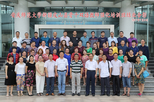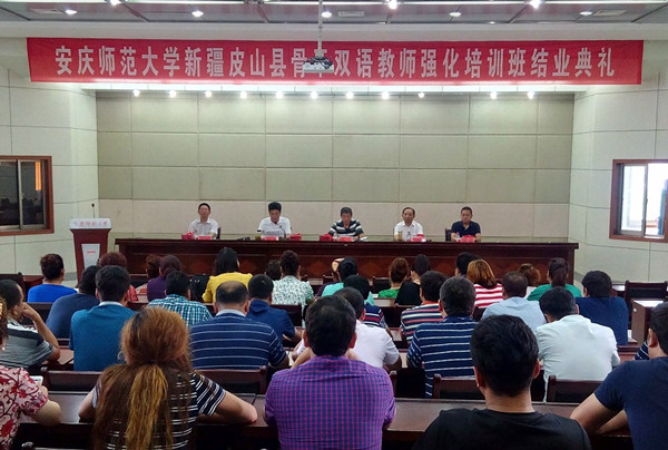 近日,yl23455永利官网新疆皮山县骨干双语教师强化培训班结业典礼在龙山校区行政楼会议大厅举行。副校长张群,校党委委员、文学院党总支书记、院长方锡球出席,相关职能部门负责同志及全体学员参加了结业典礼。