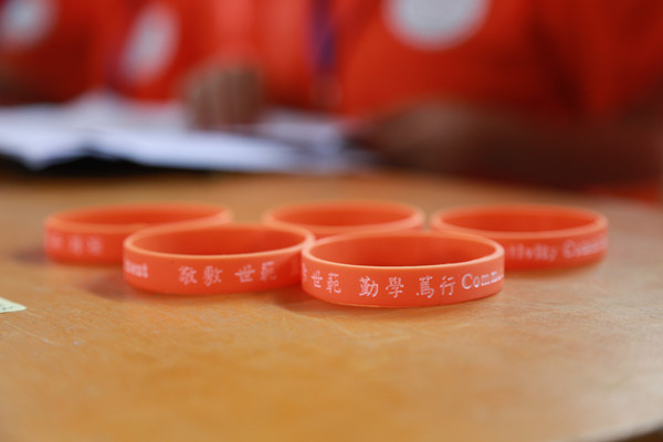 在今年的迎新中,外国语学院为新生发放的橙色手环特别显眼。“橙色代表热情,这也是我们学院迎新的主要态度,手环里刻有学校的校训和我们学院的院训,希望可以帮助新生更快地了解学校和学院。”外国语学院学生会副主席王羽说。
