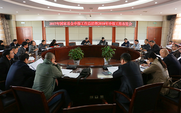 10月30日下午,2017年国家基金申报工作总结暨2018年申报工作布置会在行政楼二楼会议室召开。校长闵永新出席会议,各学院党政主要负责人、科研工作分管副院长、科研秘书,发展规划处、教务处、人事处、学科建设与研究生处主要负责人,科研处全体人员参加会议。会议由副校长汪时珍主持。