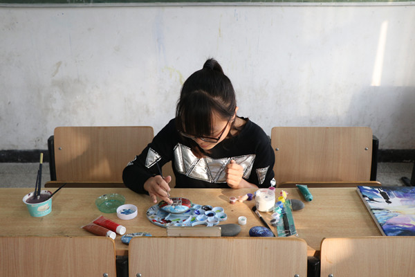 说到为什么会在石头上画上学校风光,赵子聪表示:“我已经大三了,很快就会大四毕业了。我想要把学校的每个风景、每个建筑都画在石头上,纪念我的大学时光。”(文/学生记者 施玲慧 图/学生记者 余康生)