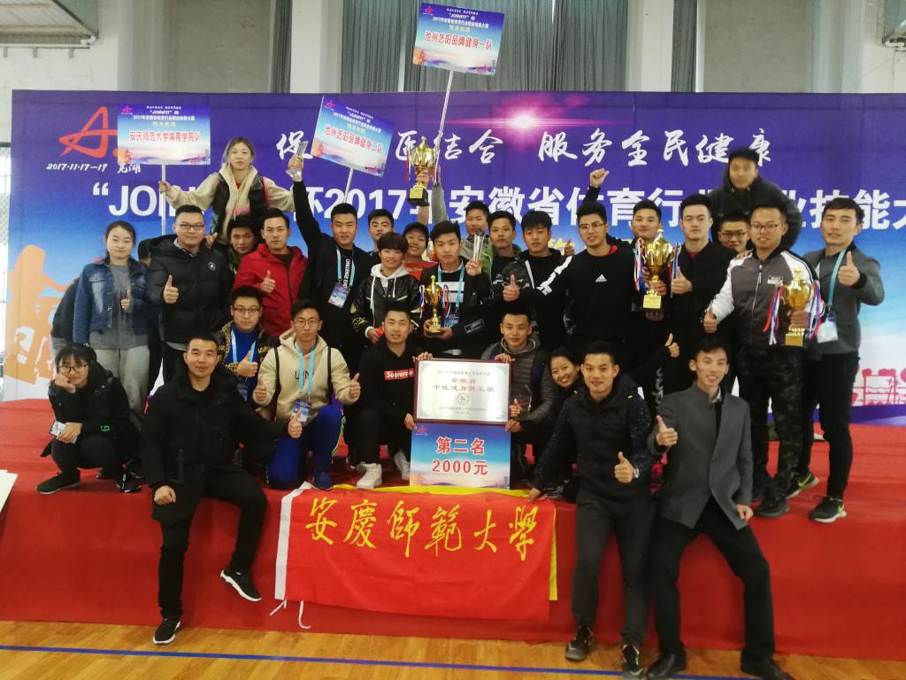 11月17日至11月19日,2017年安徽省体育行业职业技能大赛在安徽师范大学成功举办。永利官网四名参赛运动员经过为期三天的激烈角逐,荣获团体三等奖;永利官网体育学院毕业生刘国运获得安徽省十佳优秀教练称号;体育学院创业项目奥创健身获得安徽省十佳优秀俱乐部。