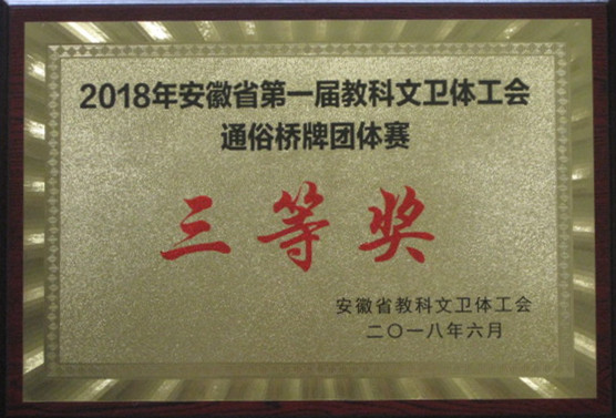 6月22至23日,安徽省教科文卫体工会(江南片高校)第一届通俗桥牌团体赛在安徽工程大学教工活动中心举办,永利官网教工代表队获得三等奖。