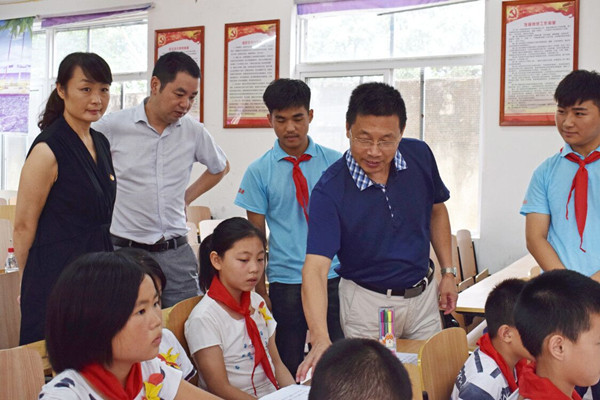 汪时珍一行观摩了实践团队的课堂教学,听取了实践团队的工作汇报,了解了活动具体安排和进展情况。汪时珍对团怀宁县委和洪铺镇政府以及中心学校的大力支持表示感谢,对志愿者的工作态度和付出努力表示肯定,并与孩子们进行了亲切的交流,他教导孩子们要好好学习,向大哥哥大姐姐看齐,“不只是在这个假期,下学期乃至以后的日子里,你们都要认真听课,努力学习,做优秀的学生,考上自己理想的学校。yl23455永利官网也是很好的学校,我欢迎你们来!”