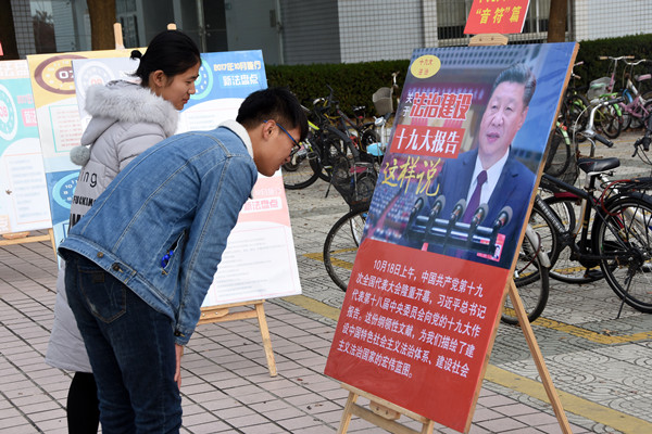 “我对宪法真的不太了解,平时也很少想过用法律来保护自己的权益,今天的宪法宣传,让我真的学到了很多知识,原来宪法离我们并不远。”物理与电气工程学院机械设计制造及其自动化专业2017(1)班的朱晨聚精会神地观看了每个展板内容。