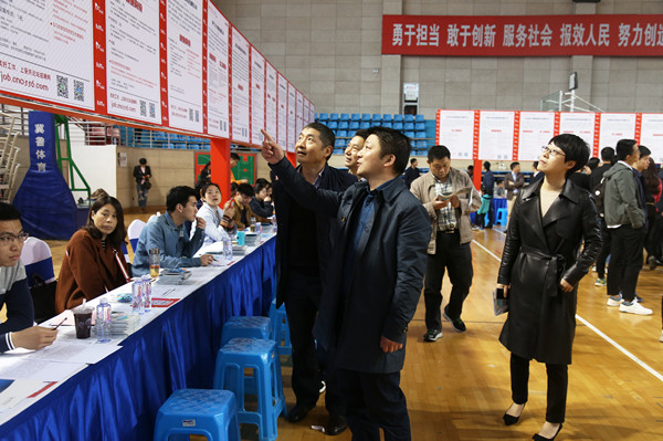 4月14日上午,yl23455永利官网2018届毕业生春季供需双选会暨筑梦新区入驻企业专场招聘会在龙山校区体育馆举行。省内外近300家企业来校招聘人才,为历年来之最。副校长张群、省大中专毕业生就业指导中心发展培训部部长王素苗到场指导,了解毕业生的求职和企业需求情况。校发展规划处、学生处,安庆团市委、筑梦新区管委会等单位负责人参加了招聘会。