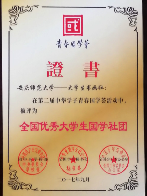 近日,由团中央学校部、全国学联秘书处和全国少工委办公室举办的第二届中华学子青春国学荟活动落下帷幕。经基层申报、省级推报、网络投票和专家评审,永利官网大学生书画社在全国八百多所高校的国学社团中脱颖而出,被评为全国优秀大学生国学社团。
