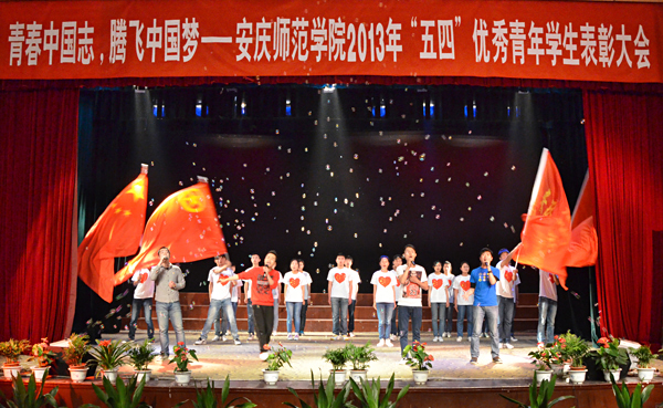 在令人振奋的合唱《五星红旗》歌声中,表彰大会落下帷幕。大会虽已结束,寻找中国梦的脚步仍未停止。此次五四表彰不仅是对永利官网团内先进的鼓励,更是对全校团员青年召唤。随后,各级团学组织还将进一步开展以“青春中国志,腾飞中国梦”为主题的系列活动,广泛开展中国梦、师院梦的各类活动,通过诸如“安庆师范学院之中国梦”微博大赛、“我的中国梦”征文比赛等活动,积极引导青年,陶冶青年学生的道德情操,为实现全体团员青年的师院梦而不懈努力。(文/唐雪莲 学生记者 周媛媛 王乐乐 吴云霞 图/钱敏 学生记者 鲍声美)