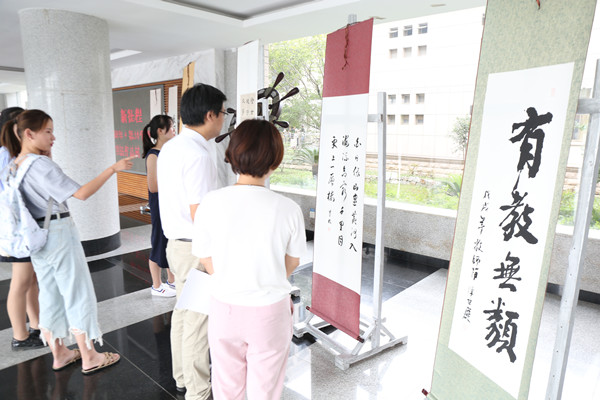 本次书法作品展将展出至9月15日。(校工会)